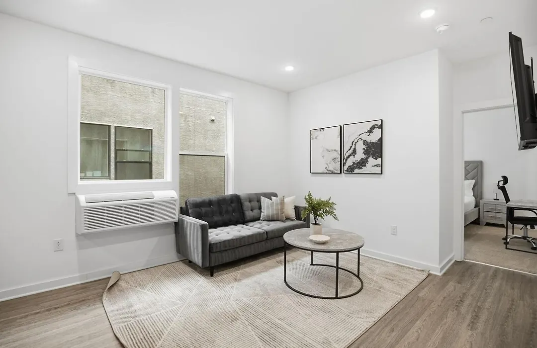 An oven and a dishwasher are a standard in a fully furnished kitchen. Simple, Modern 1Br In Fairmount Square Apartment is just 200 metres from Girard Station underground station and a few moments from 16th St &Thompson St bus stop.